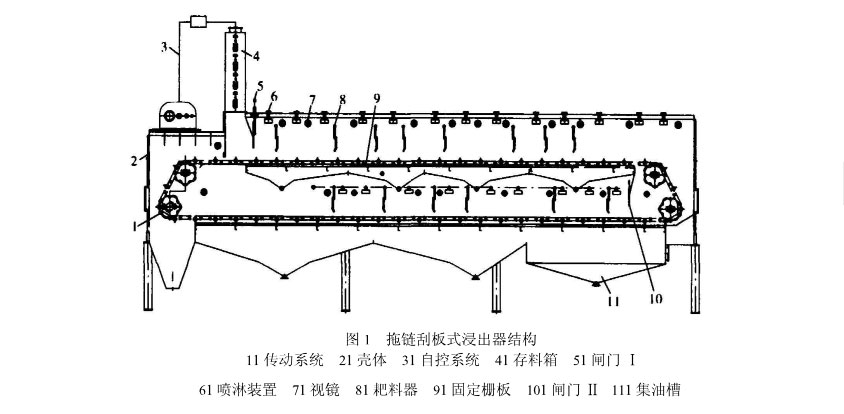 浸出設(shè)備拖鏈刮板式浸出器是在環(huán)形浸出器和履帶式浸出器的基礎(chǔ)上,設(shè)計(jì)并推廣應(yīng)用的新型浸出器,特別適合于較大規(guī)模的油料浸出。該類型浸出器以其對物料強(qiáng)大的適應(yīng)性,穩(wěn)定的運(yùn)行可靠性以及優(yōu)良的浸出指標(biāo)頗受用戶歡迎。