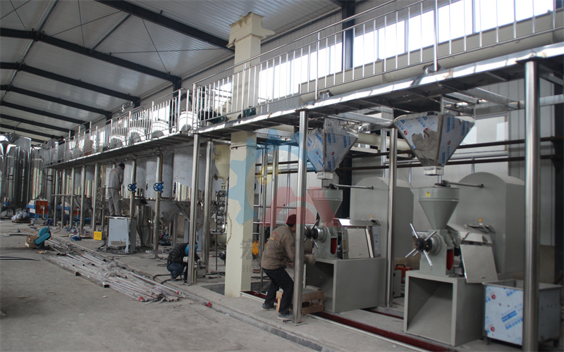 隨著消費(fèi)水平的提高,人們對(duì)于食物也不僅僅只考慮味道,對(duì)于健康更是尤為注重。近些年來隨著健康飲食逐漸興起,一些小眾油脂逐漸出現(xiàn)在大眾視野,牡丹籽油就是其中一種。牡丹籽不僅產(chǎn)量高、而且抗性強(qiáng)、適應(yīng)性廣,發(fā)展?jié)摿Υ?,是目前我國可大面積推廣的高亞麻酸木本油料作物。 牡丹籽油加工工藝流程和常見油脂大致相同,常見油脂有壓榨和浸出兩種生產(chǎn)工藝,但作為小品種食用油之一,牡丹籽原料生長范圍、播種面積不如常見的花生、菜籽等原料播種面積廣、產(chǎn)量大,因此不適于浸出工藝生產(chǎn)。宏德機(jī)械建議牡丹籽油的加工還是選擇壓榨工藝來生產(chǎn),主要原因有兩點(diǎn): 一是浸出設(shè)備投資成本高,機(jī)械化程度高,需要連續(xù)化生產(chǎn),適合大宗油料生產(chǎn),效率高,產(chǎn)量大。而壓榨生產(chǎn)線設(shè)備可以根據(jù)客戶的產(chǎn)量配置設(shè)備的數(shù)量,有利于成本的節(jié)約。 二是壓榨生產(chǎn)線是采用物理壓榨工藝,生產(chǎn)出的牡丹籽油保留了原料的營養(yǎng)和風(fēng)味,消費(fèi)者的認(rèn)可程度更高。 牡丹籽油壓榨生產(chǎn)線提取油脂的主要設(shè)備有榨油機(jī)和精煉設(shè)備,壓榨工藝分為冷榨和熱榨兩種,具體選擇哪種工藝還是要由客戶來選擇。精煉設(shè)備則是保證成品牡丹籽油能達(dá)到食用油標(biāo)準(zhǔn),保證牡丹籽油品質(zhì)的重要設(shè)備。 下面是宏德客戶牡丹籽油壓榨精煉生產(chǎn)線的安裝現(xiàn)場(chǎng)圖片: 牡丹籽的清理采用振動(dòng)清理篩和比重去石機(jī),清理后的牡丹籽由絞龍送至下個(gè)車間。 清理后的牡丹籽進(jìn)行脫殼、蒸炒后送入榨油機(jī)壓榨出油。 壓榨得到的牡丹籽毛油在精煉設(shè)備中進(jìn)行脫膠、脫酸、脫色、脫臭處理,再送入脫蠟設(shè)備進(jìn)行低溫脫蠟,之后經(jīng)過板框過濾機(jī)過濾后的牡丹籽油就是一級(jí)牡丹籽油。
