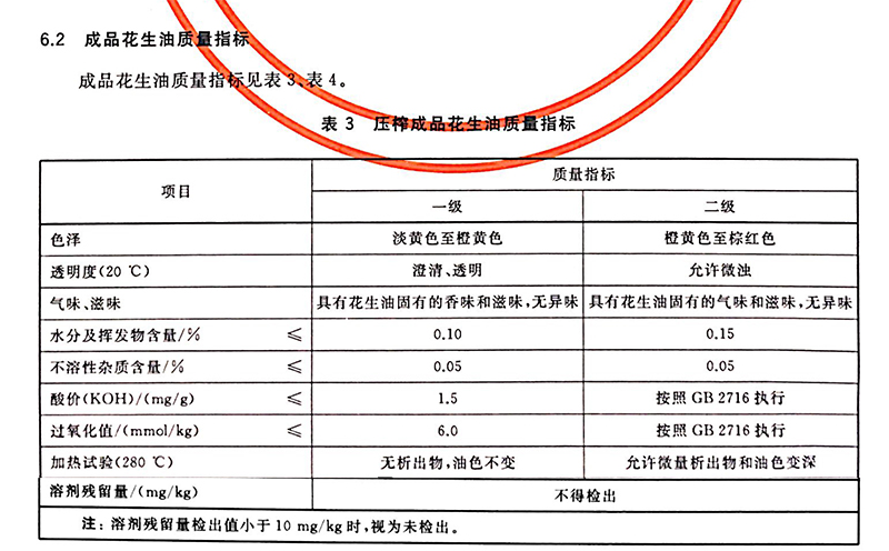 成品花生油質(zhì)量指標(biāo)是衡量一款花生油是否合格的標(biāo)準(zhǔn),此標(biāo)準(zhǔn)適用于壓榨花生成品油。
