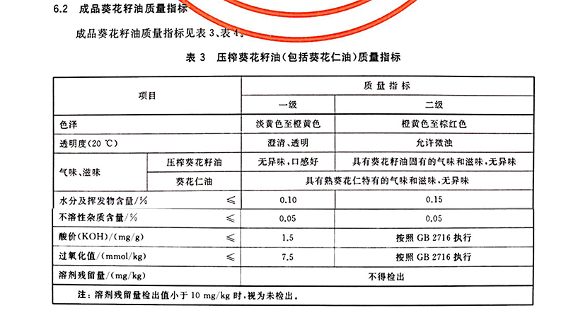 GB/T 10464-2003 葵花籽油質(zhì)量指標(biāo)